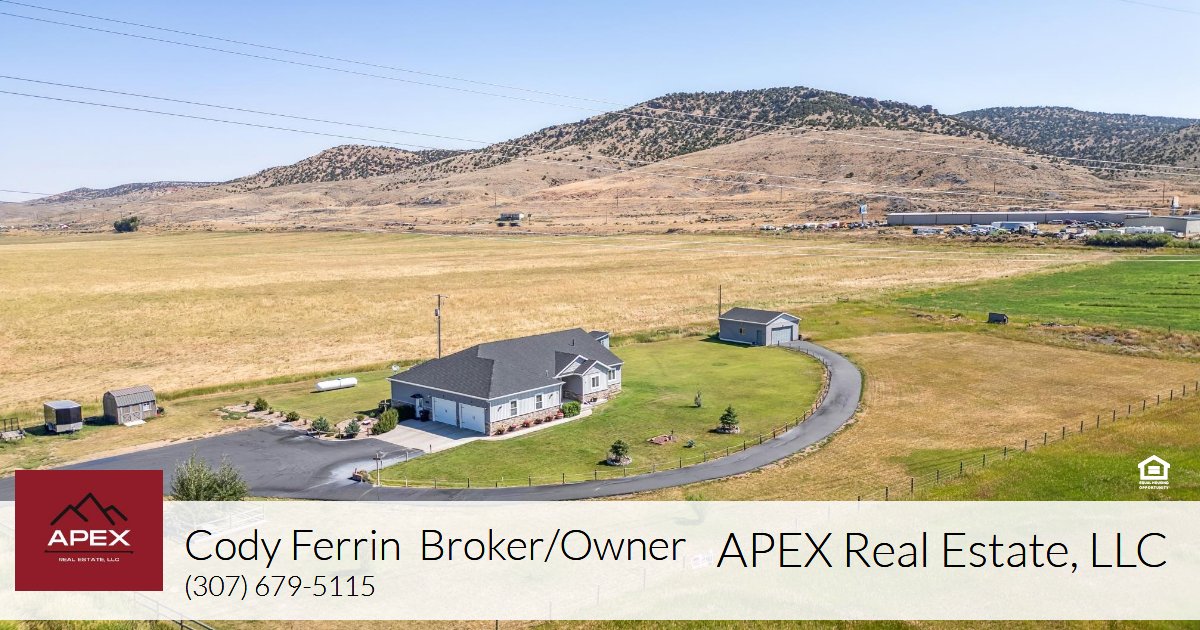 This exceptional property combines the peace of country living with modern amenities, making it the perfect forever home. Don’t miss your chance to own this rare property! Schedule a showing today by contacting Cody Ferrin with APEX Real Estate at 307.679.5115. Buyer or Buyer's agent to verify all info.